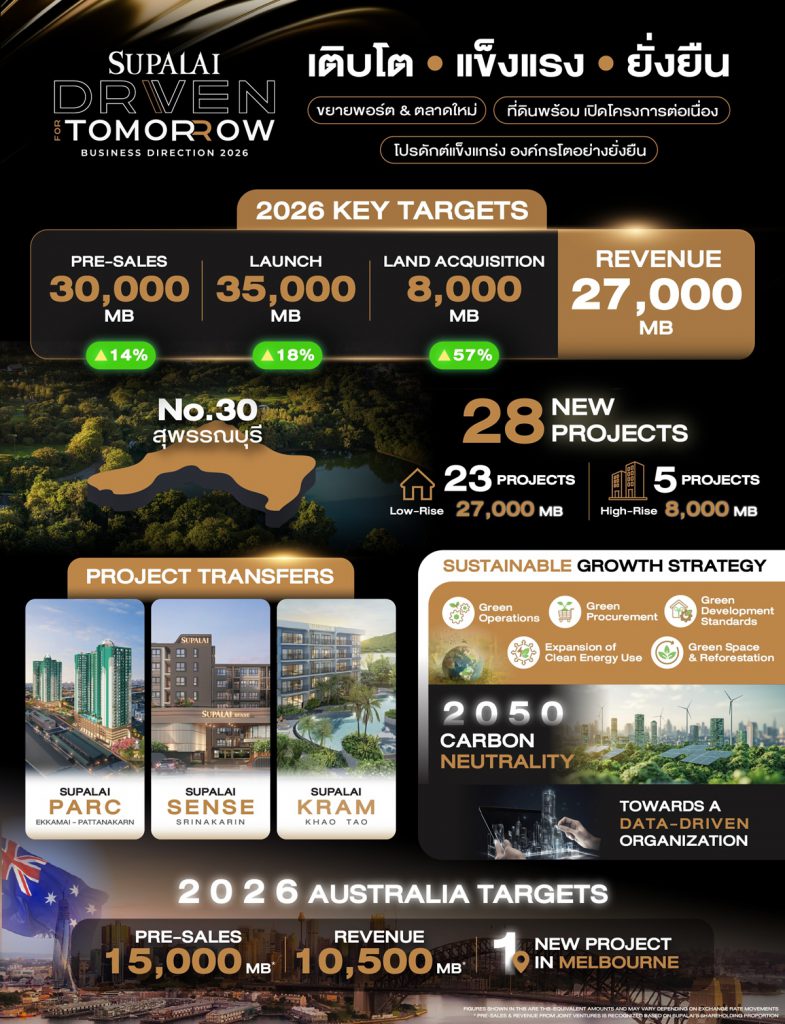 “ศุภาลัย” เปิดแผนปี69 Driven for Tomorrow รุกเปิด 28 โครงการใหม่ ตั้งเป้ายอดขายไทยและออสเตรเลีย มูลค่า 45,000 ลบ.