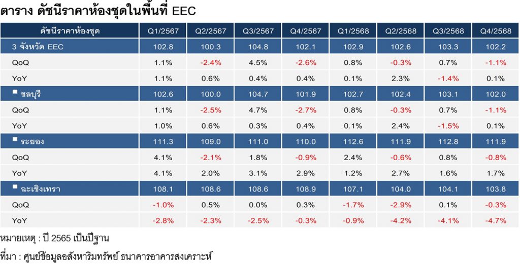 ดัชนีราคาห้องชุดในพื้นที่ EEC ไตรมาส 4 ปี 2568