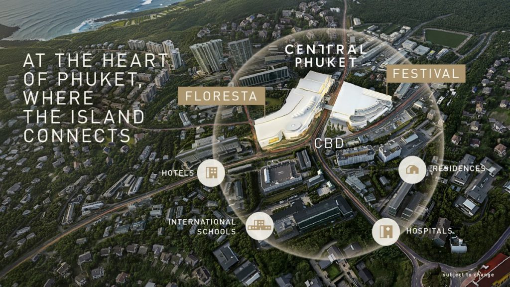 จุฑาธรรม จิราธิวัฒน์ Head of Business & Design Development บมจ.เซ็นทรัลพัฒนา กล่าวถึงแนวคิดการออกแบบว่า “ก่อนที่เราจะพูดถึงความแตกต่างของ Festival และ Floresta สิ่งสำคัญที่สุดคือ 1) เราไม่ได้ออกแบบแค่ศูนย์การค้า เราออกแบบ ‘หัวใจของเมืองภูเก็ต’ ในฐานะเมืองชายทะเลหรูระดับโลก ที่มีวัฒนธรรม ไลฟ์สไตล์ และมีความหรูหราในแบบของตัวเอง และต้องทำให้ Central Phuket District เป็น Global flagship experience ในทุกด้าน เป็นศูนย์รวมของ Luxury, Lifestyle และ Entertainment และ 2) โปรเจ็กต์ Super Regional mall ที่มีขนาดใหญ่ ใกล้เคียง centralwOrld และมี Luxury brand ระดับโลกเทียบเท่า Central Embassy