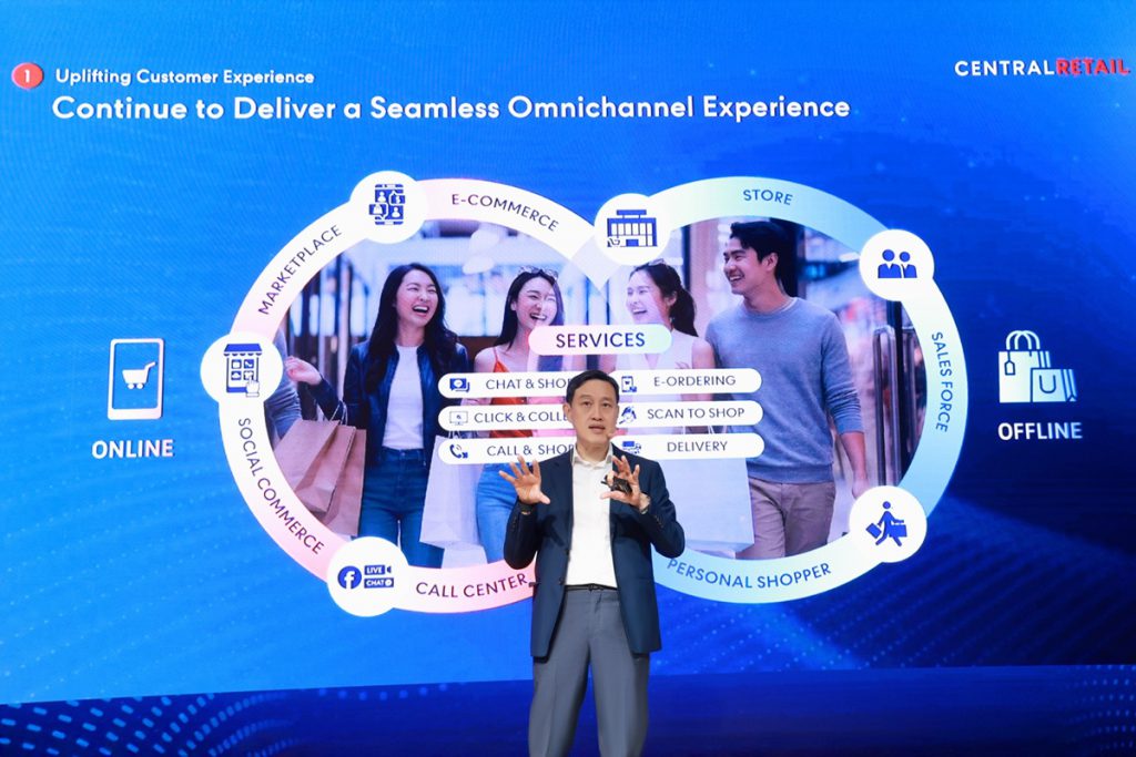 สำหรับปี 2569 นี้ ซึ่งถือเป็นปีแห่ง “Challenges & Opportunities” ของธุรกิจค้าปลีก-ค้าส่ง เซ็นทรัลรีเทล พร้อมเดินหน้าสานต่อยุทธศาสตร์ 3 ปี New Heights, Next Growth ภายใต้กลยุทธ์ ‘Innovation in Action’ เพื่อยกระดับศักยภาพองค์กรสู่การเติบโตครั้งใหม่ ผ่าน 3 แนวทางหลัก ได้แก่ อัพเกรดประสบการณ์การช้อปปิ้งแบบไร้รอยต่อ (Uplift Customer Experience) มุ่งต่อยอดความสำเร็จของแพลตฟอร์มออมนิแชแนลของเซ็นทรัล รีเทล ที่มียอดขายเติบโตขึ้นอย่างต่อเนื่อง โดยในปี 2568 ยอดขายจากช่องทางออนไลน์เติบโตขึ้นถึง 14% เมื่อเทียบกับปีก่อน โดยเซ็นทรัล รีเทล มีการพัฒนาทั้งในส่วนของประสบการณ์หน้าร้านด้วยพนักงานที่พร้อมให้บริการแบบเฉพาะตัว, การปรับปรุงบรรยากาศภายในร้าน, การเพิ่มจุด Self-Checkout, การจัดอีเว้นท์ร่วมกันของธุรกิจในเครือ และการเพิ่มพื้นที่ไลฟ์สไตล์ต่าง ๆ ที่ช่วยดึงดูดทราฟฟิก เช่น โซนอาหาร โซนเกม และแชมเปญบาร์ เป็นต้น ตลอดจนนำ AI มาช่วยยกระดับการช้อปปิ้งออนไลน์ให้รวดเร็ว และง่ายดายยิ่งขึ้น ไม่ว่าจะเป็นการค้นหาสินค้า โปรโมชัน และคูปองสุดคุ้มที่ออนท็อปได้อย่างตรงใจ รวมถึงเชื่อมต่อประสบการณ์ระหว่างหน้าร้านและโลกดิจิทัลผ่านบริการ Personal Shopper, Chat & Shop, Click & Collect และ Reserve & Collect ที่ทำให้ลูกค้าช้อปปิ้งได้อย่างสะดวกสบายไร้รอยต่ออัพเกรดแบรนด์และสินค้าให้ทันสมัย (Reinvent Concepts And Merchandise) อาทิ การพัฒนาสินค้าที่วางจำหน่ายในไฮเปอร์มาร์เก็ต GO! ประเทศเวียดนาม โดยเน้นกลุ่มเบเกอรี่ อาหารพร้อมทาน สินค้าเกี่ยวกับบ้าน และสินค้า Private Label ให้ตอบโจทย์ลูกค้ามากยิ่งขึ้น